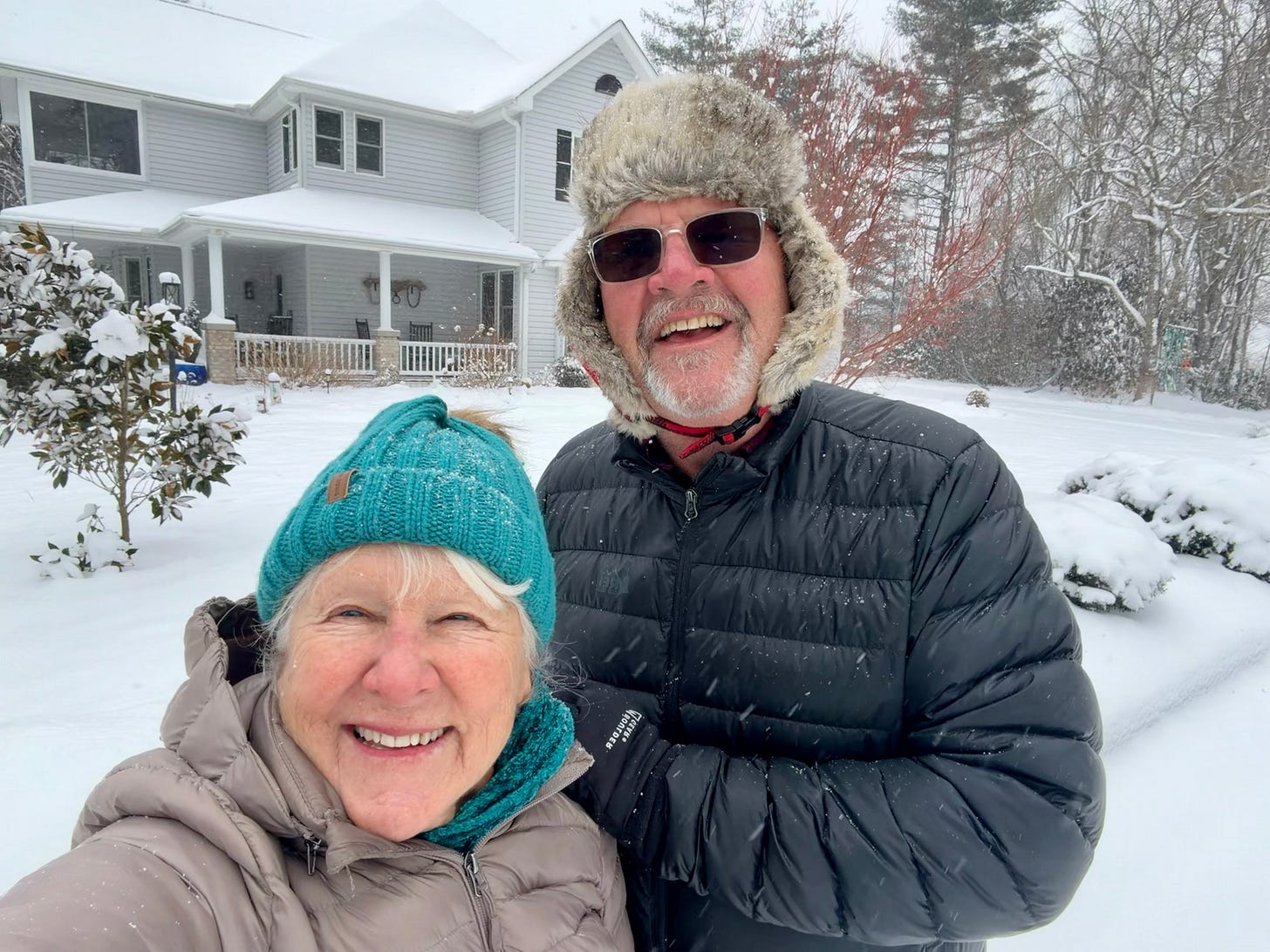 Sunday, after the big snow here in Western North Carolina, Gwen and I took a winter walk. We walked on a country road with a frozen river on our left and fallow fields of harvest grain on our right.